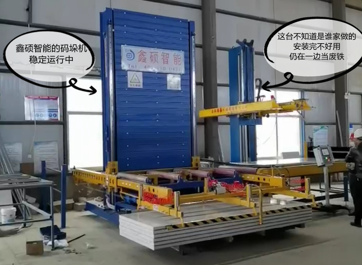 在客戶的印象里,鑫碩智能的產(chǎn)品第一印象就是貴,但是貴有貴的道理,凡是用過鑫碩智能設(shè)備的客戶,沒有說過設(shè)備不好的。一方面是對設(shè)備的品質(zhì)認(rèn)可,另一方面是對鑫碩智能的服務(wù)認(rèn)可。所以買東西不能總盯著價格,最重要的是看品質(zhì)。鑫碩智能夾芯板碼垛機(jī),用過絕不會后悔